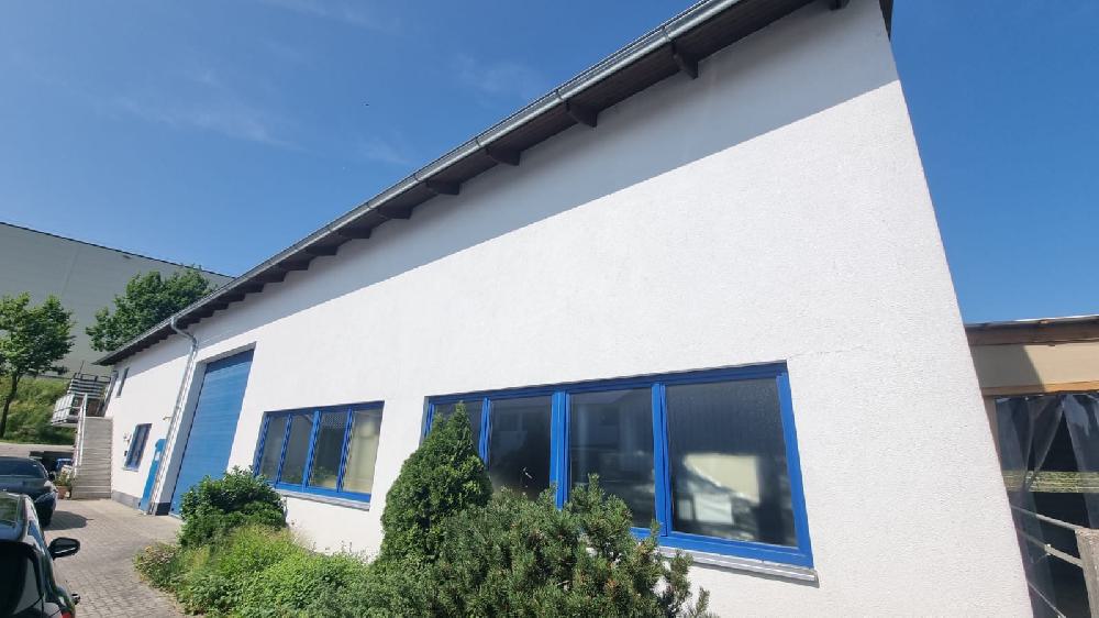 Über eine massive Betontreppe gelangt man in die Wohnung. Diese ist separat zugänglich und kann betreten werden, ohne den Hallenbereich zu durchqueren. Wohnung und Halle/Büro verfügen jeweils über eine eigene Heizungsanlage.